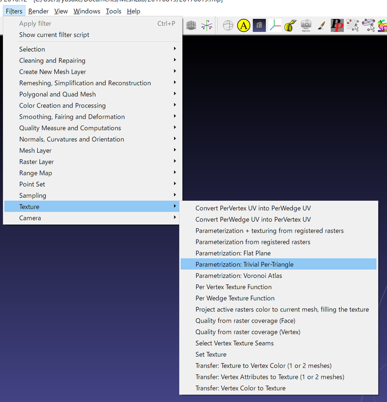 meshlabで点群メッシュ化の際に色情報をテクスチャ画像にする pointcloudconsortium