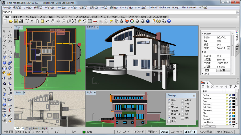 rhinoのウィンドウ