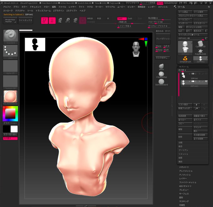 zbrushのsculptris pro スカルプトリス プロ で直感的に造形ができr カツオの間