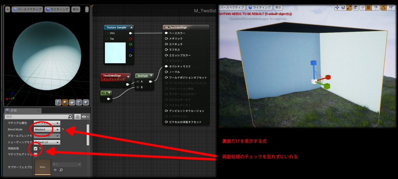 ue4 あまり使われないマイナーなマテリアル機能 その1 two sided もんしょの巣穴blog