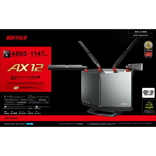 Buffalo wifi 無線lan ルーター wxr 5950ax12 wi fi6 11ax 11ac ax6000 4803 1147mbps 日本メーカー iphone12 11 iphone se 第二世代 ps5 メーカー動作確認済み.